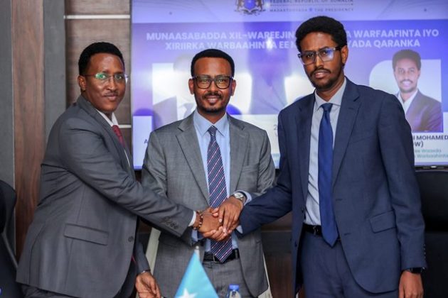 Nov 29(Jowhar)-Agaasimaha Guud ee Madaxtooyada Qaranka Mudane Cabdixakiim Maxamed Yuusuf ayaa xilka u kala wareejiyey Agaasimaha cusub ee Waaxda Warfaafinta iyo Xiriirka Warbaahinta Mudane Cabdicasiis Xasan Maxamed(Golfyare) iyo Agaasimihii hore Mudane Maxamed Aadan Maxamed.