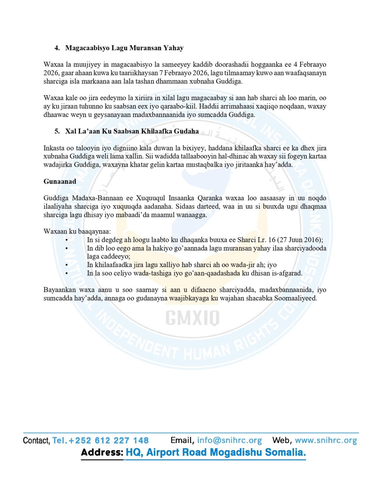 Dhinaca kale, bayaanka ayaa lagu xusay in magacabid la sameeyay kadib doorashadii hoggaanka ee 4 Febraayo 2026, gaar ahaan 7 Febraayo 2026, iyadoo la tilmaamay in habka loo maray aanu si buuxda ula jaanqaadin sharciga iyo talo wadaagga xubnaha.