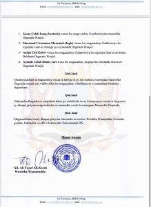 Sida lagu shaaciyay qoraalka kasoi baxay wasaarada arrimaha gudaha, Waxaa la magacaabay gudoomiyaha degmada Waajid, kuxigeenadiisa Amniga iyo Arrimaha Bulshada iyo Xoghayahq degmada.