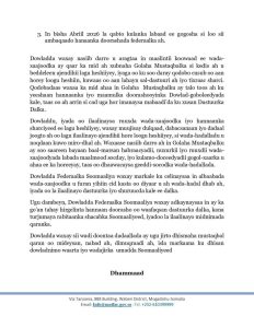 Feb 24(Jowhar)-Dawladda Federaalka oo markii u horeysay ka hadashay shirkii ay wada yeesheen dhankeeda iyo Golaha Mustaqbalka, iyadoo  sheegtay in 3 qodob heshiis lagu ahaa, kuwaas oo ah.