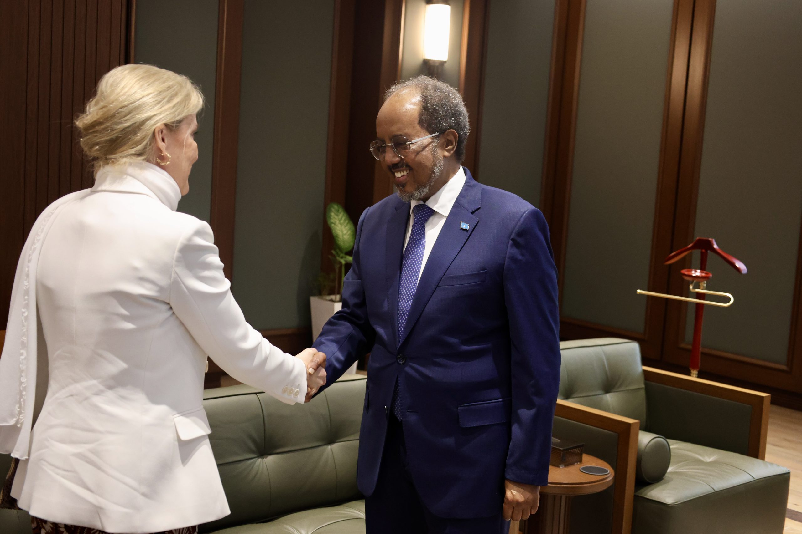 The Duchess was hosted at Villa Somalia by President Hassan Sheikh Mohamud for an introductory call during which they discussed the crucial role women play in peacebuilding, strengthening community resilience and ensuring accountability for sexual and gender-based violence.