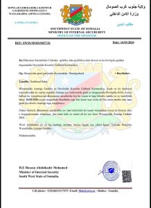 Amarkan oo ka soo baxay Wasaaradda Amniga Gudaha ee Koofur Galbeed ayaa lagu wargeliyay dhammaan saraakiisha ciidanka ee ku sugan deegaannada maamulka, iyadoo lagu adkeeyay in safarro shaqo ama kuwo gaar ah oo ay ku tagayaan caasimadda aan la oggolaan doonin waqtigan.