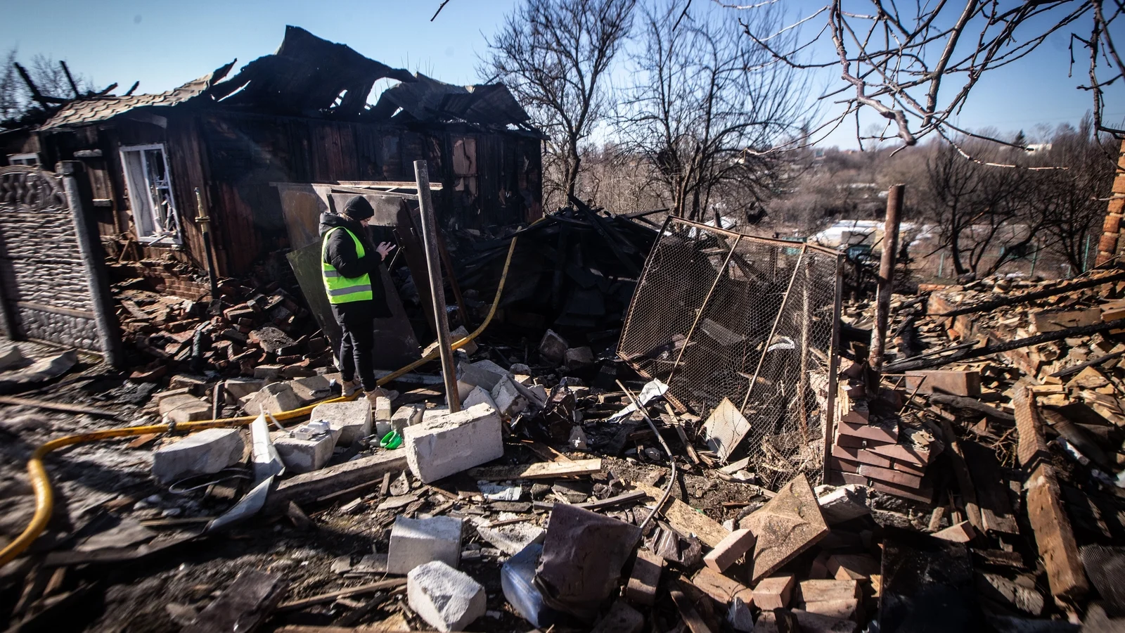 Olena, a teacher in her fifties who has taught in that preschool for decades, stood on the sidewalk without a jacket in the chilly air. “The children’s drawings were on the wall,” she whispered. “Little suns, little houses. Now the suns are covered in dust. We teach them songs about peace. Where do you teach them now?”