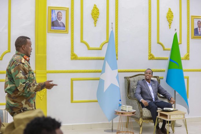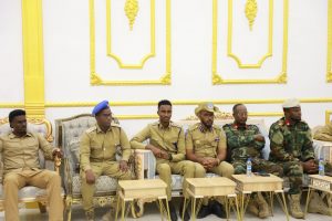 Taliyaha Ciidanka Booliiska Dowladda Hirshabeelle Sarreeye Guuto Xasan Dhicisoow Xasan ayaa Madaxweynaha kaga warbixiyey dhammaan shaqadda nabad-gelyada.