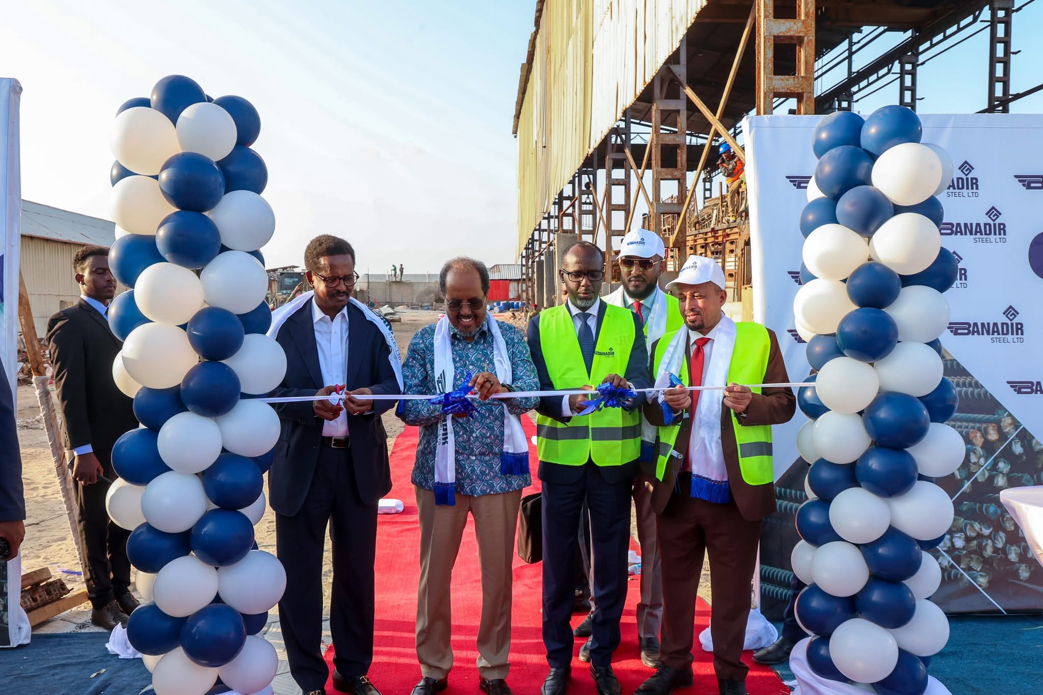 Nov 08(Jowhar)-Madaxweynaha Jamhuuriyadda Federaalka Soomaaliya Mudane Xasan Sheekh Maxamuud oo ka duulaya ahmiyadda ay leedahay xoojinta Wax-soosaarka dalkeenna ayaa xarigga ka jaray Warshadda Banaadir Steel oo ah Warshad cusub oo soo saarta Biraha Shubka ee lagu dhiso Guryaha, iyadoo isticmaaleysa dib u warshadeynta biraha duugoobay.