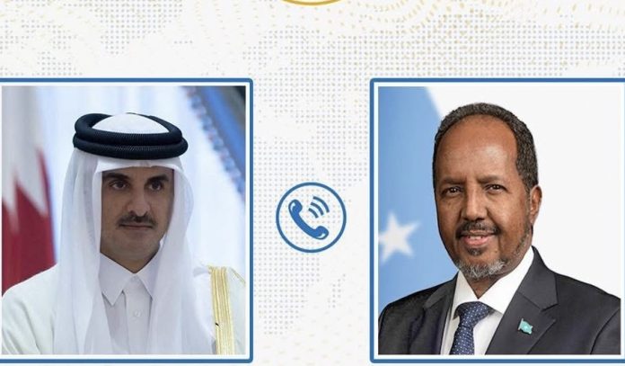 Feb 16(Jowhar)-Madaxweynaha Jamhuuriyadda Federaalka Soomaaliya, Mudane Xasan Sheekh Maxamuud ayaa wadahadal miro dhal ah oo khadka taleefanka ah la yeeshay Amiirka Dowladda Qatar, Mudane Sheekh Tamiim Bin Hamad Al-Thaani.