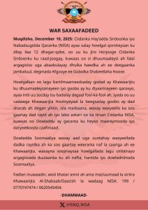 NISA oo howlgal gaar ah ku dishay 12 Shabaab ah
