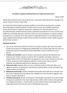 Bayaanka culumada ayaa si gaar ahaa fariin ugu socotay Madaxweynaha Jamhuuriyadda, waxaana lagu yiri: