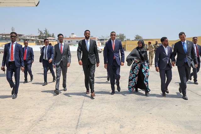 Feb 10(Jowhar)-Ra’iisul Wasaaraha Xukuumadda Jamhuuriyadda Federaalka Soomaaliya, Mudane Xamsa Cabdi Barre, ayaa maanta kormeer shaqo ku tagay Garoonka Diyaaradaha Caalamiga ah ee Aadan Cabdulle ee caasimadda Muqdisho, si uu qiimeeyn ugu sameeyo heerka adeegyada kala duwan ee loo fidinayo bulshada Soomaaliyeed iyo sida ay u shaqeynayaan hay’adaha ka hawlgala garoonka.