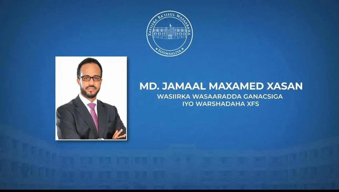 Wasiirka cusub ee Ganacsiga iyo Warshadaha XFS ayaa loo magaacabay Jamaal Maxamed Xasan, iyadoo xilkaas laga qaaday Maxamuud Axmed Aadan ( Geesood).