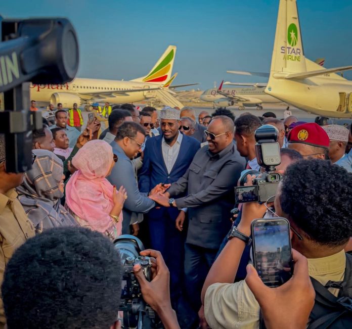 Madaxwaynaha iyo wafdiga uu hogaaminayo ayaa waxaa garoonka ku soo dhaweeyay masuuliyiin ay ka mid yihiin xildhibaano,