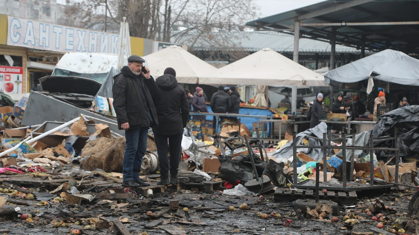 A man surveys the damage caused to an outdoor market after a Russian drone strike on Odesa