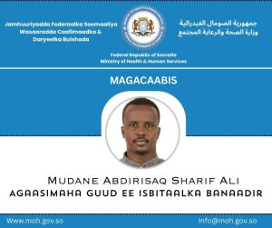 Nov 07(Jowhar)-Wasiirka Caafimaadka XFS Dr. Cali Xaaji Aadan ayaa xilkii ka qaaday Agaasimaha Isbitaalka Hooyada & Dhallaanka ee Banaadir,wuxuuna Cabdirisaaq Shariif Cali u𝐮 u 𝐦𝐚𝐠𝐚𝐜𝐚𝐚𝐛𝐚𝐲 𝐀𝐠𝐚𝐚𝐬𝐢𝐦𝐚𝐡𝐚 𝐆𝐮𝐮𝐝 𝐞𝐞 𝐢𝐬𝐛𝐢𝐭𝐚𝐚𝐥𝐤𝐚 𝐇𝐨𝐨𝐲𝐚𝐝𝐚 & 𝐃𝐡𝐚𝐥𝐥𝐚𝐚𝐧𝐤𝐚 𝐞𝐞 𝐁𝐚𝐧𝐚𝐚𝐝𝐢𝐫.