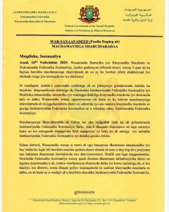 Nov 16(Jowhar)-Wasaaradda Batroolka iyo Macdanta Soomaaliya ayaa soo saartay war-saxaafadeed ay kaga hadlayso macdaneysiga sharcidarrada ah ee ay ku lug leeyihiin shaqsiyaad iyo shirkado isugu jira Soomaali iyo ajanabi.